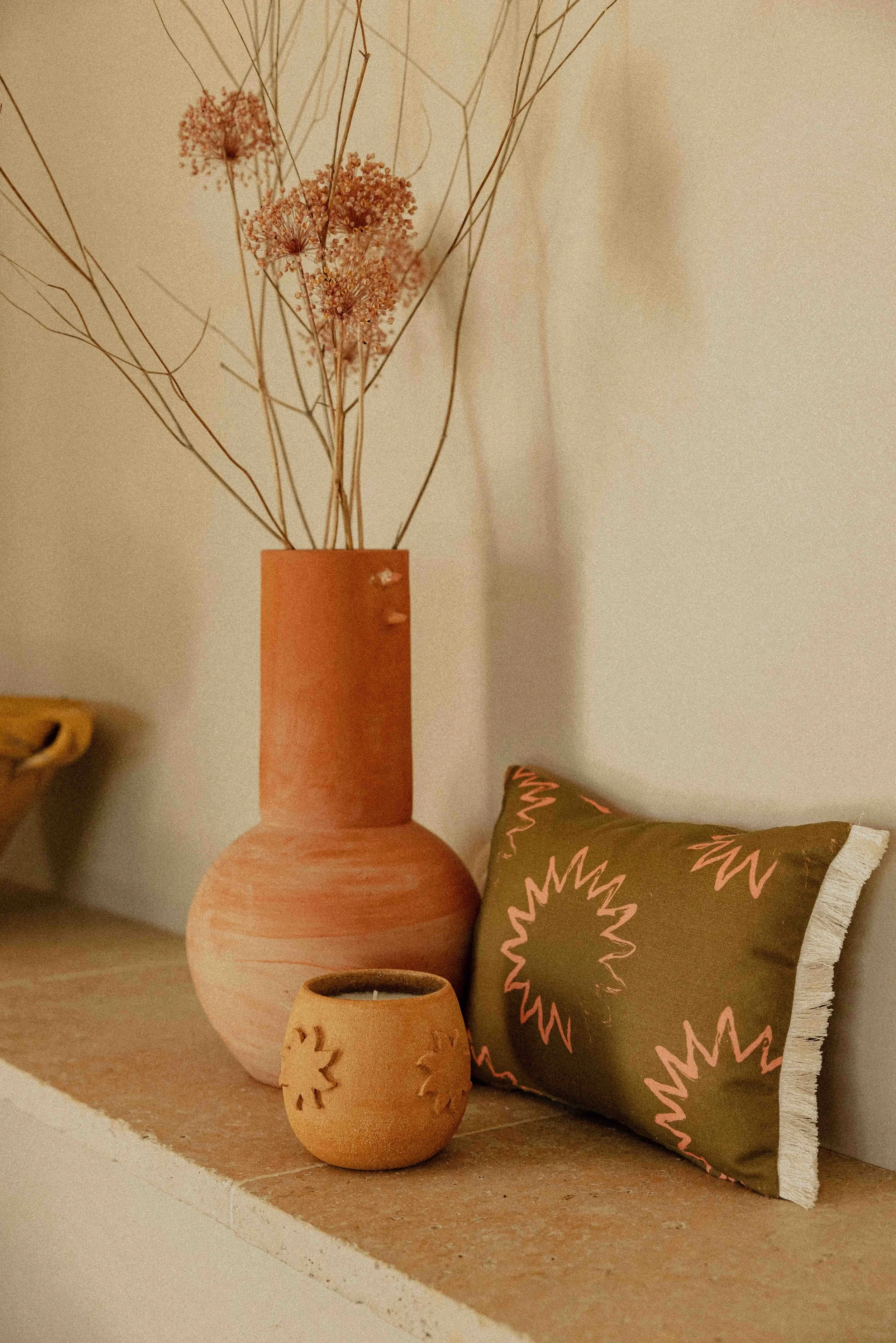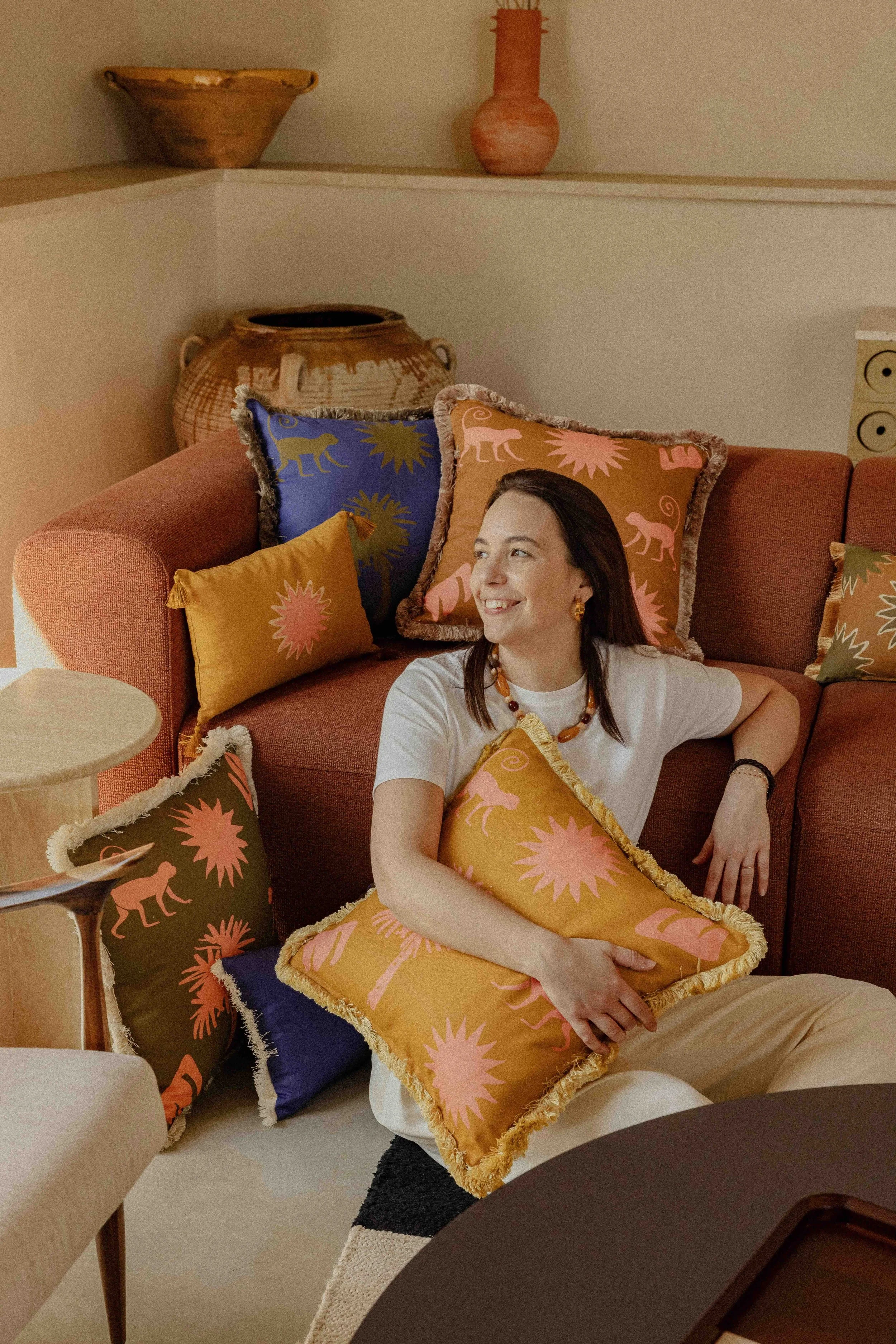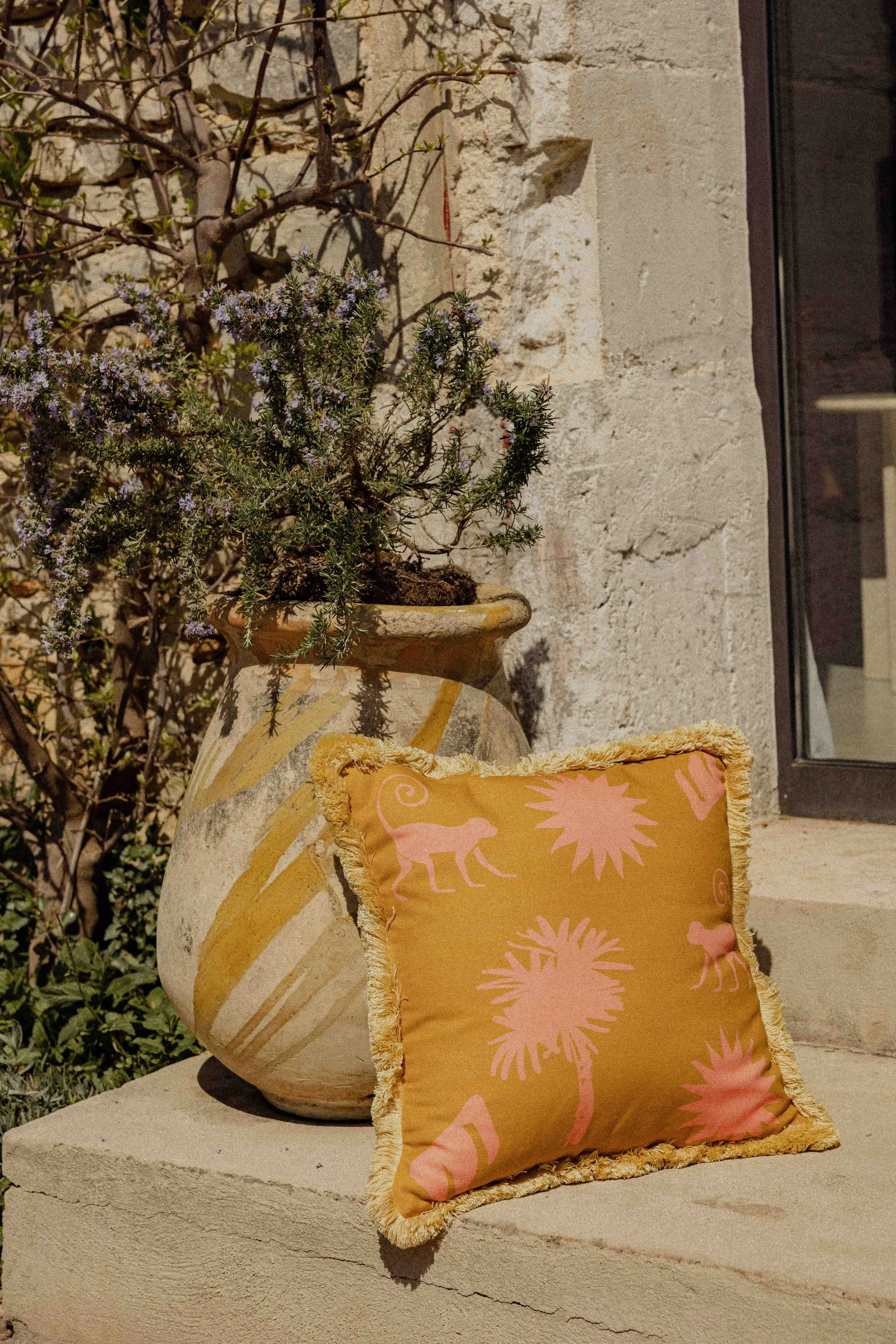 Chaque coussin, chaque céramique, chaque objet a été pensé comme un fragment d’été : une lumière douce, un souffle de voyage, un détail qui parle d’ailleurs.