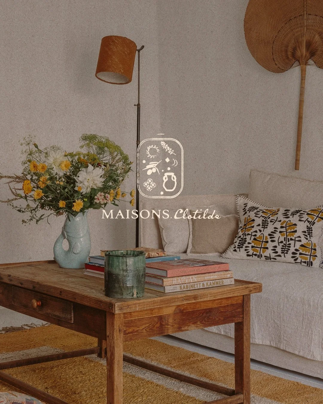 Clotilde redonne vie à des maisons empreintes de mémoire, principalement en Provence, dans des lieux comme L’Isle-sur-la-Sorgue ou Cucuron, où pierre, nature et artisanat se rencontrent. L’identité de marque devait donc refléter cette approche : douce, poétique et intuitive.